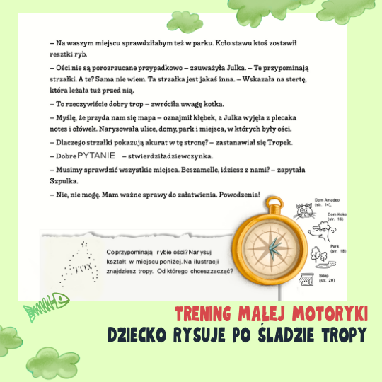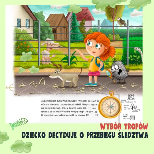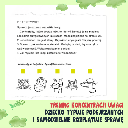 Nowa, czwarta część serii wciąga dzieci w śledztwo pełne zagadek i tropów – muszą rysować po śladzie, odczytywać mapę, podkreślać słowa i wybierać podejrzanych. Dzięki temu ćwiczą koncentrację uwagi, cierpliwość, spostrzegawczość i logiczne myślenie.